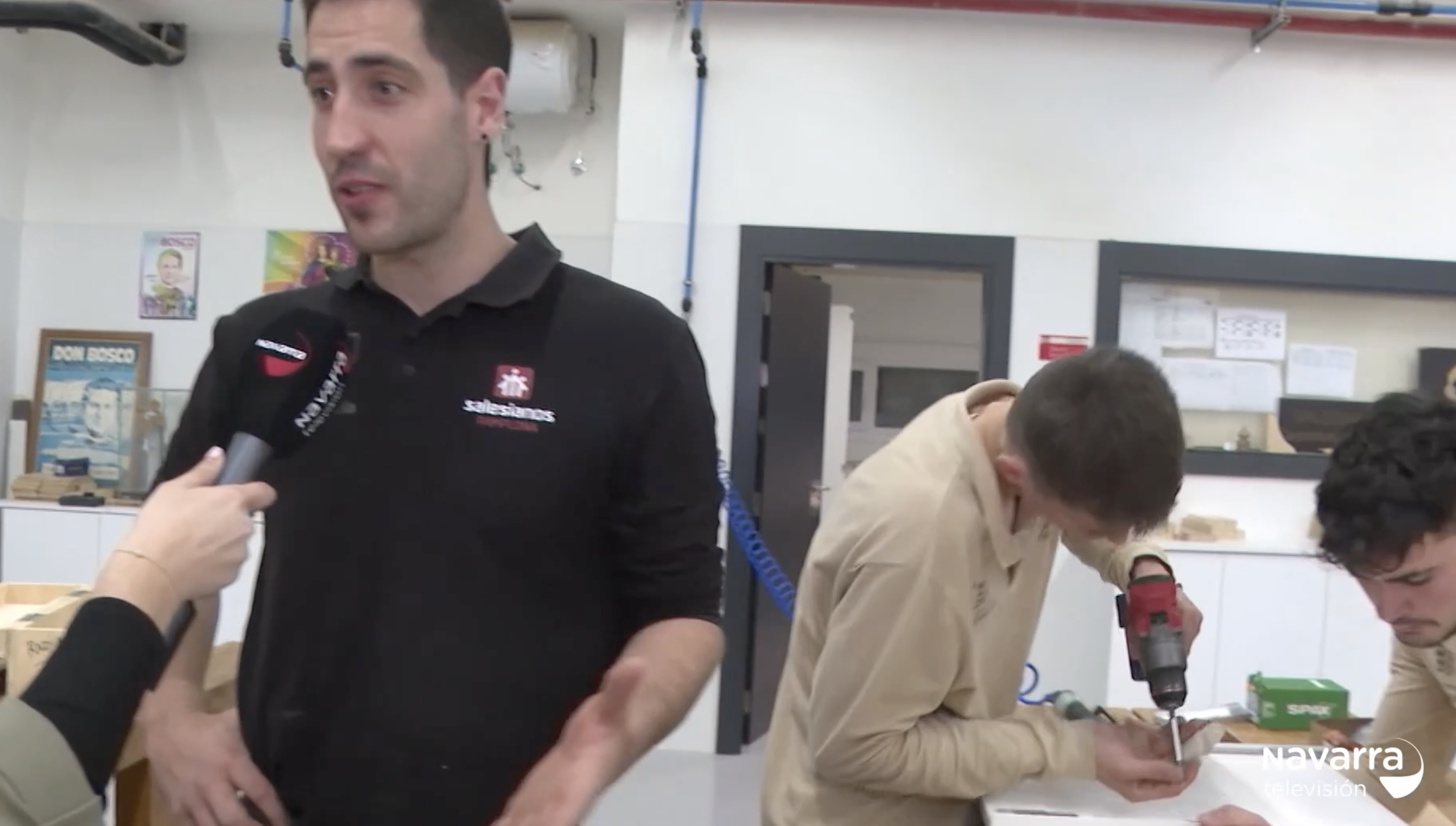 19 alumnos de grado medio de Carpintería de Salesianos Pamplona con 4 profesores están colaborando con 4 familias afectadas por la DANA en Paiporta. Les instalarán suelos, puertas y mobiliario de cocina fabricado por ellos mismos.