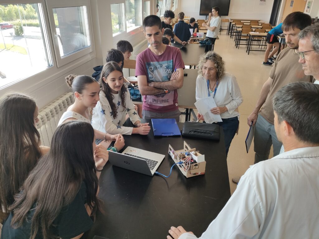 En la última sesión, tres profesores de Formación Profesional (Eduardo, Carlos y Aitor) desempeñaron el papel de jurado para puntuar a los distintos proyectos en cuanto a su construcción y funcionamiento. Además el jurado valoró, de forma muy importante, como los miembros del equipo explicaron el funcionamiento del proyecto, las dificultades que habían tenido y cómo las habían solucionado.