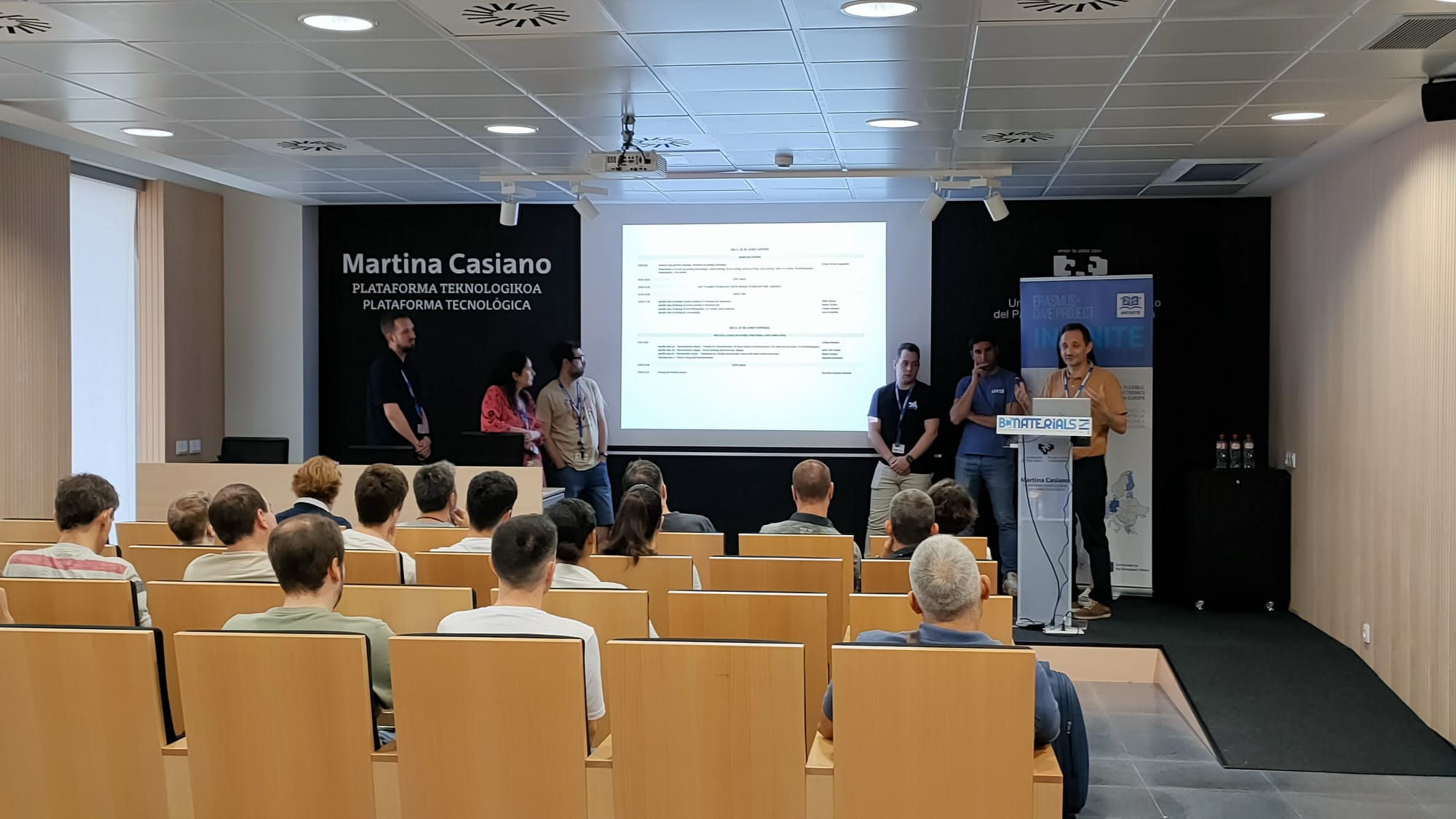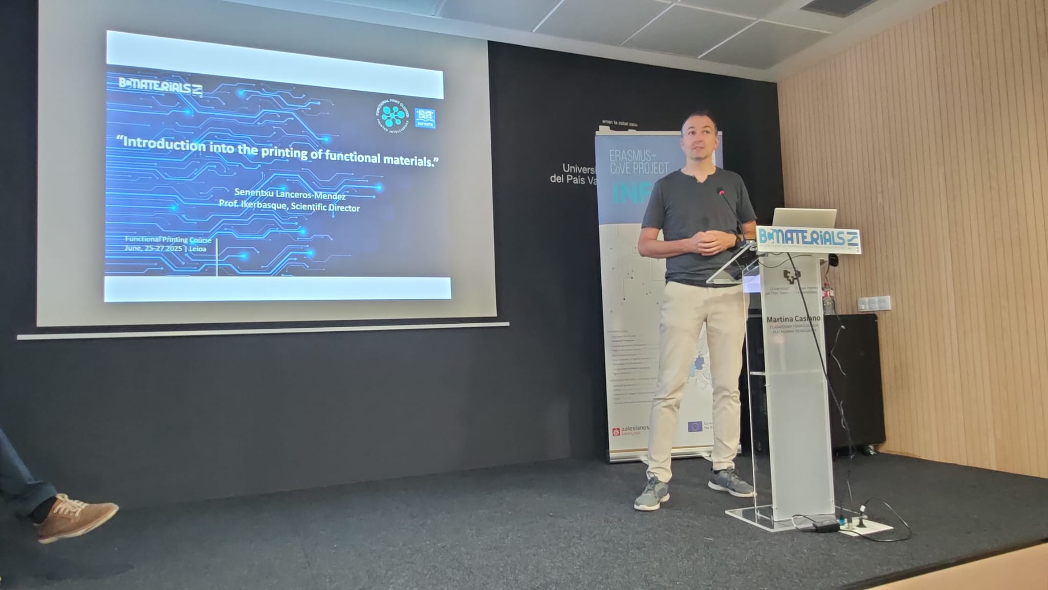 La semana pasada, un grupo de nueve profesores de los departamentos de Electricidad/Electrónica y Artes Gráficas de Salesianos Pamplona participó en un curso especializado sobre impresión funcional (Electrónica impresa), impartido en las instalaciones del centro tecnológico BC Materials, ubicadas en el campus de Leioa de la Universidad del País Vasco (UPV/EHU).