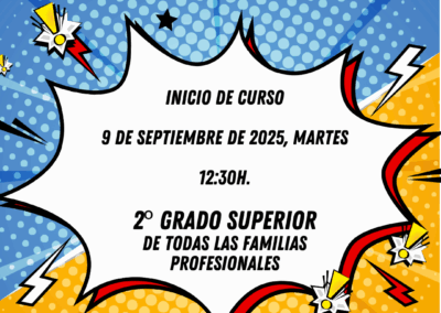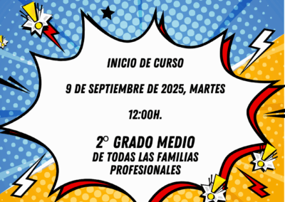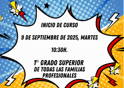 El próximo martes, 9 de septiembre, se dará la bienvenida a los y las estudiantes de Grado Medio y Superior de las diferentes Familias Profesionales.