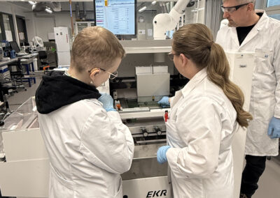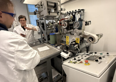 Por su parte, la visita al centro tecnológico VTT nos ofreció una visión complementaria desde el ámbito de la investigación aplicada. Conocimos sus instalaciones y equipamiento, destacando el sistema de impresión Roll to Roll, que incluye tecnologías como la serigrafía, la flexografía y el huecograbado, lo que nos permitió acercarnos a la aplicación real de estos procesos en contextos industriales y de investigación.
