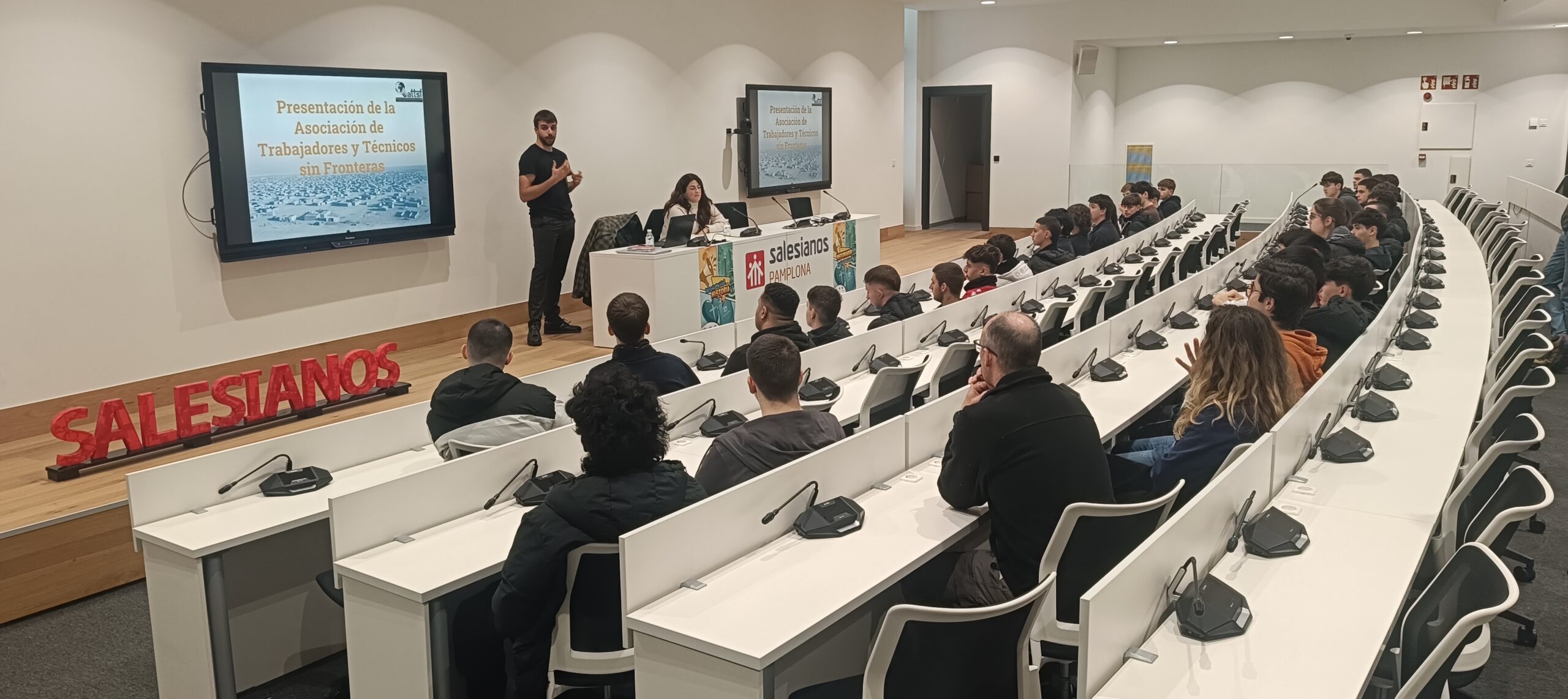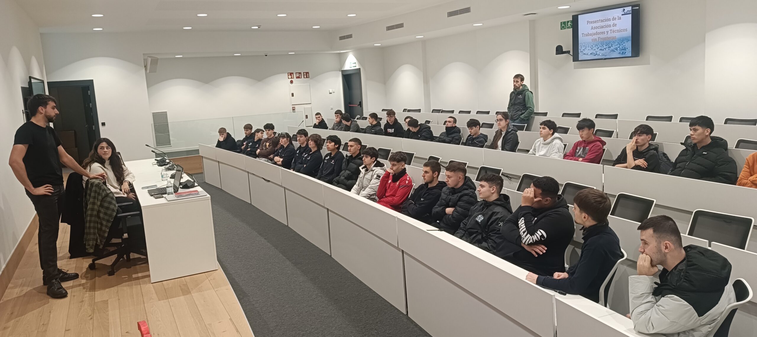 La charla fue impartida por la ONG Asociación de Técnicos y Trabajadores sin Fronteras (ATTsF), de la mano de Asier Aldea, quien explicó al alumnado participante en el proyecto IFL, así como al alumnado de 2º CFM y 2º MME, la realidad diaria de los campamentos. Durante la sesión se abordaron aspectos como la forma de vida de la población refugiada, la falta de recursos básicos, las limitadas oportunidades de futuro y la labor que desde hace años desarrolla esta ONG navarra sobre el terreno.